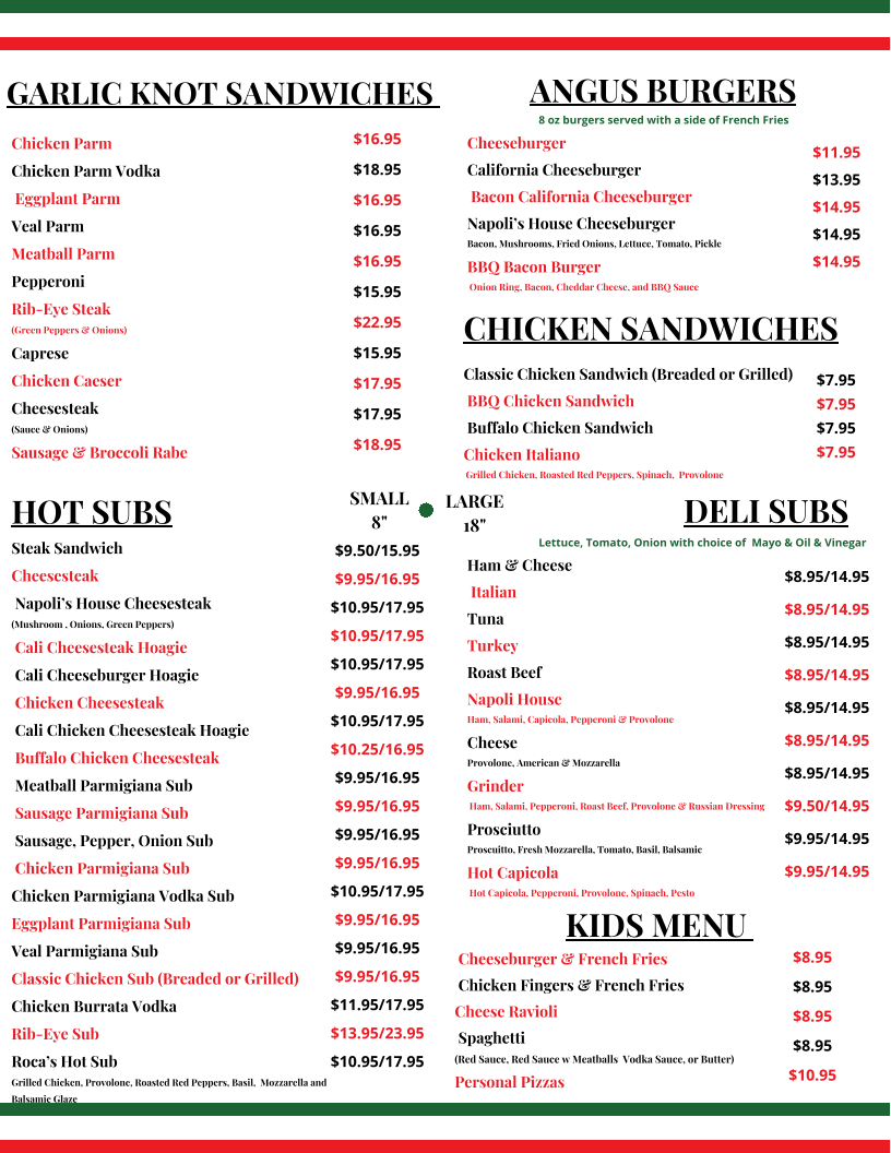 Welcome to Napoli Pizza and Italian Cuisine, a gem located at 2013 Willow Park Rd, Bethlehem, PA. Renowned for its freshly prepared dishes, Napoli offers an enticing menu that includes fan favorites such as the garlic knot sandwiches and the renowned chicken parm garlic knot sandwich, praised by satisfied customers for their generous portions and mouthwatering flavors.